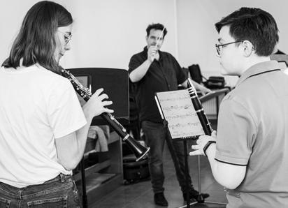 wel in het ensemble. Daarom moet je anders met sommige instrumenten omspringen. Als er maar een klarinet is, kan je die enkel als solo gebruiken. Drie klarinetten, zoals nu, kan je als sectie gebruiken. Als arrangeur hou je hier rekening mee.