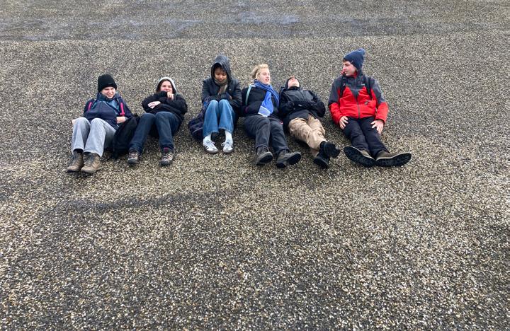 maakte, maar wat ons anderzijds nog dichter bij elkaar bracht en ons ook regelmatig aan het lachen bracht. We konden bij momenten amper blijven rechtstaan, zowel door de extreme wind als door de slappe lach. Frederik werd al snel de mascotte van de groep met zijn ‘stormparaplu’ (lachen). We hadden een schriftje, waarin we ideeën konden noteren op basis van de vraag die we ‘s ochtends meekregen van Maud. Vragen als ‘waar geloof je in?‘, ‘waarvoor ben je bang?’, vragen die op een anekdotische, maar ook op een meer filosofische vraag beantwoord kunnen worden.