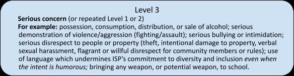 For any concern, the student may appeal the level determined and/or the consequences In the case of level 5 concerns the Board of Trustees must be informed The only purpose of an appeal to the Board of Trustees is in the case of procedural defects. Our work presumes full collaboration from all parties; in the case of non-collaboration, the school does reserve the right not to re-register the student for the following school year.