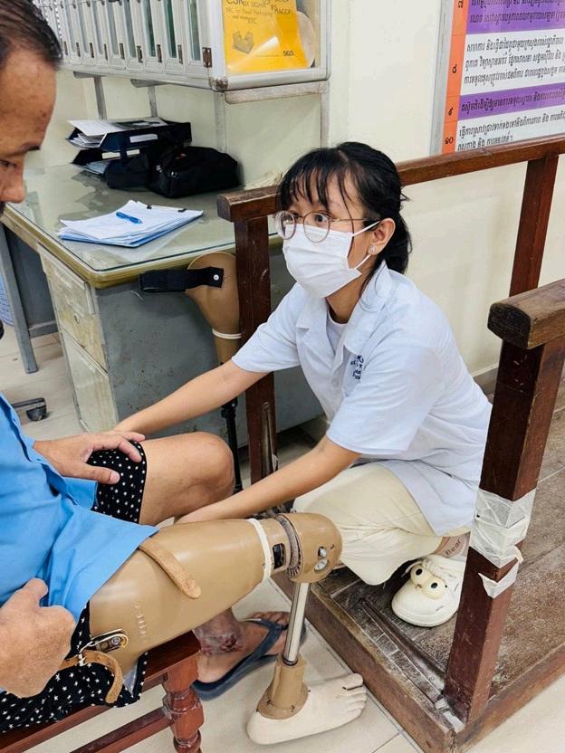 StudentsfromtheCambodianSchoolofProstheticsandOrthoticsmeasurethepatient’s residuallimbpriortofabricationofprostheticsocketduringtheirnecessarycourse Students willfabricateatleast10prosthesesduringtheirtimeintheprogram