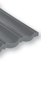 střešních latí montujte přesně na rozměr spodních hran latí 410 mm až k hřebeni. Všechny latě upevněte naležato. Poslední lať pod hřebenem upevněte co nejblíže k hřebeni. Doporučujeme použít distanční měřítko pro přesné rozměření spodních hran latí i v tom případě, že šířka latí není absolutně stejná. Přesná vzdálenost spodních hran latí je nezbytná pro přesnost osazení a připevnění jednotlivých šablon. Dle typu použitého hřebenáče upravte laťování u hřebene. Při použití hřebenáčů půlkulatých osaďte držáky hřebenové latě a srovnejte je do roviny tak, aby bylo možné správně osadit hřebenáče. Pokud budou na střeše namontovány držáky sněhových zábran nebo bezpečnostní prvky, použijte v místě osazení těchto prvků zesílení laťování – viz montážní návod pro systém sněhových zábran. Komponenty se osazují v průběhu montáže krytiny.