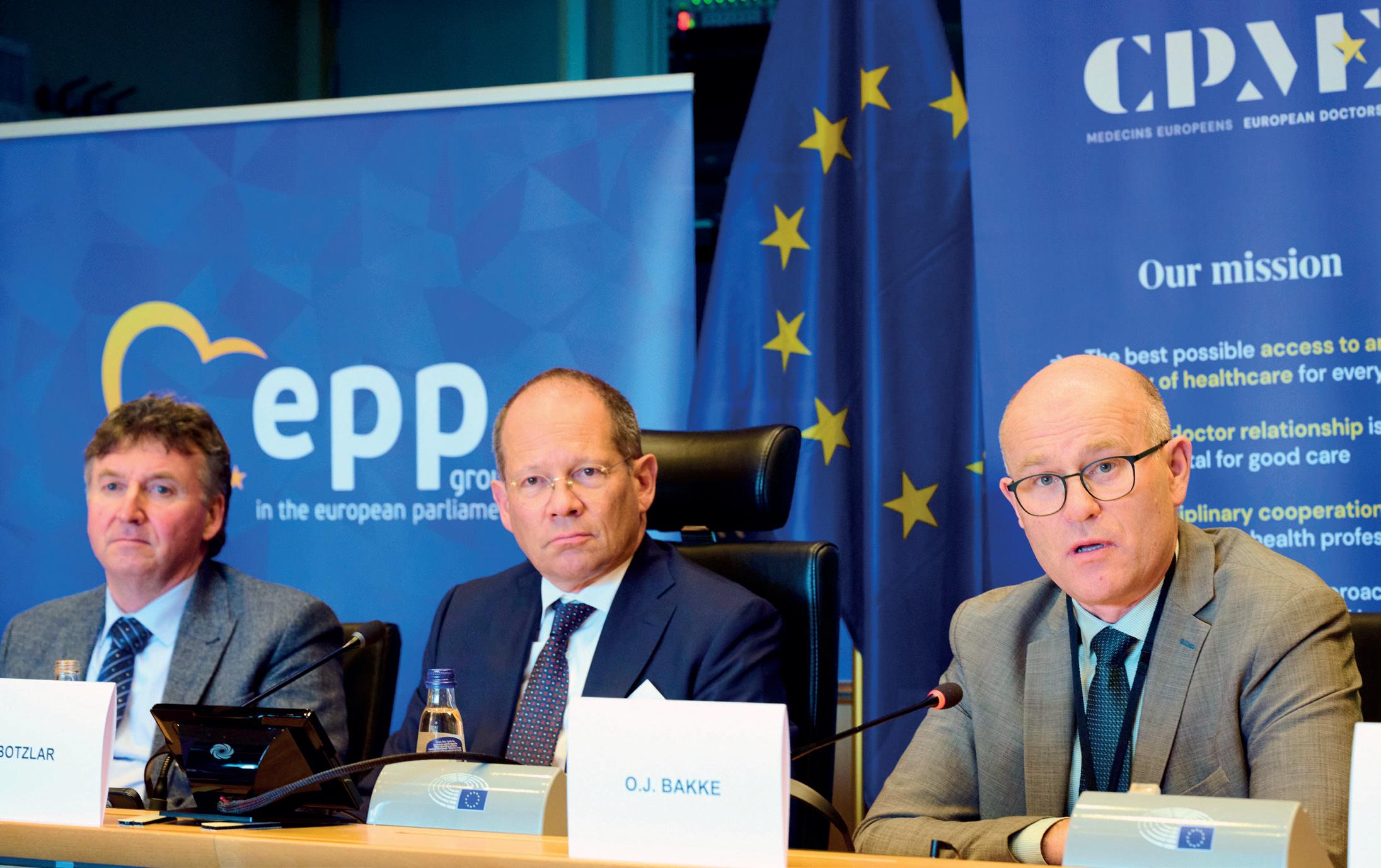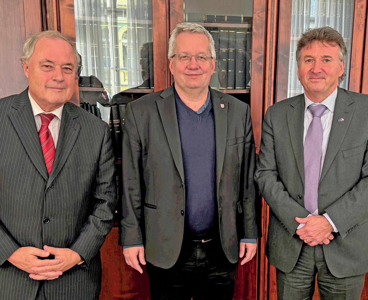 Prezident ČLK Milan Kubek, viceprezident CPME Dr. Andreas Botzlar (Německá lékařská komora) a prezident CPME Dr. Ole Johan Bakke (Norská lékařská asociace) na snímku zleva. Foto: