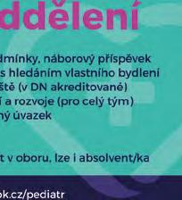 Nabízíme flexibilní pracovní dobu, podmínkou je velmi dobrá znalost německého jazyka. Kontakt: npg-cham@gmx.de Hledám atestovaného pediatra na částečný (perspektivně úplný) úvazek do ambulance v Praze 6 u metra A. Kontakt: mudrkocnarova.webnode.cz, n.kocnarova@email.cz