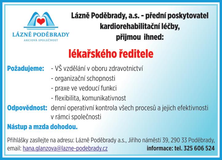 Příspěvky se nemusejí shodovat se stanoviskem redakce. Ta si současně vyhrazuje právo na redakční úpravu textů. Řádková inzerce je pro lékaře do pěti řádků (včetně) zdarma. Větší rozsah a inzerát nelékaře je zpoplatněn. Při zadávání inzerátu je proto potřeba zadat fakturační kontaktní adresu, IČ, DIČ, telefon, e-mail. Bez těchto informací nebude inzerát zveřejněn.