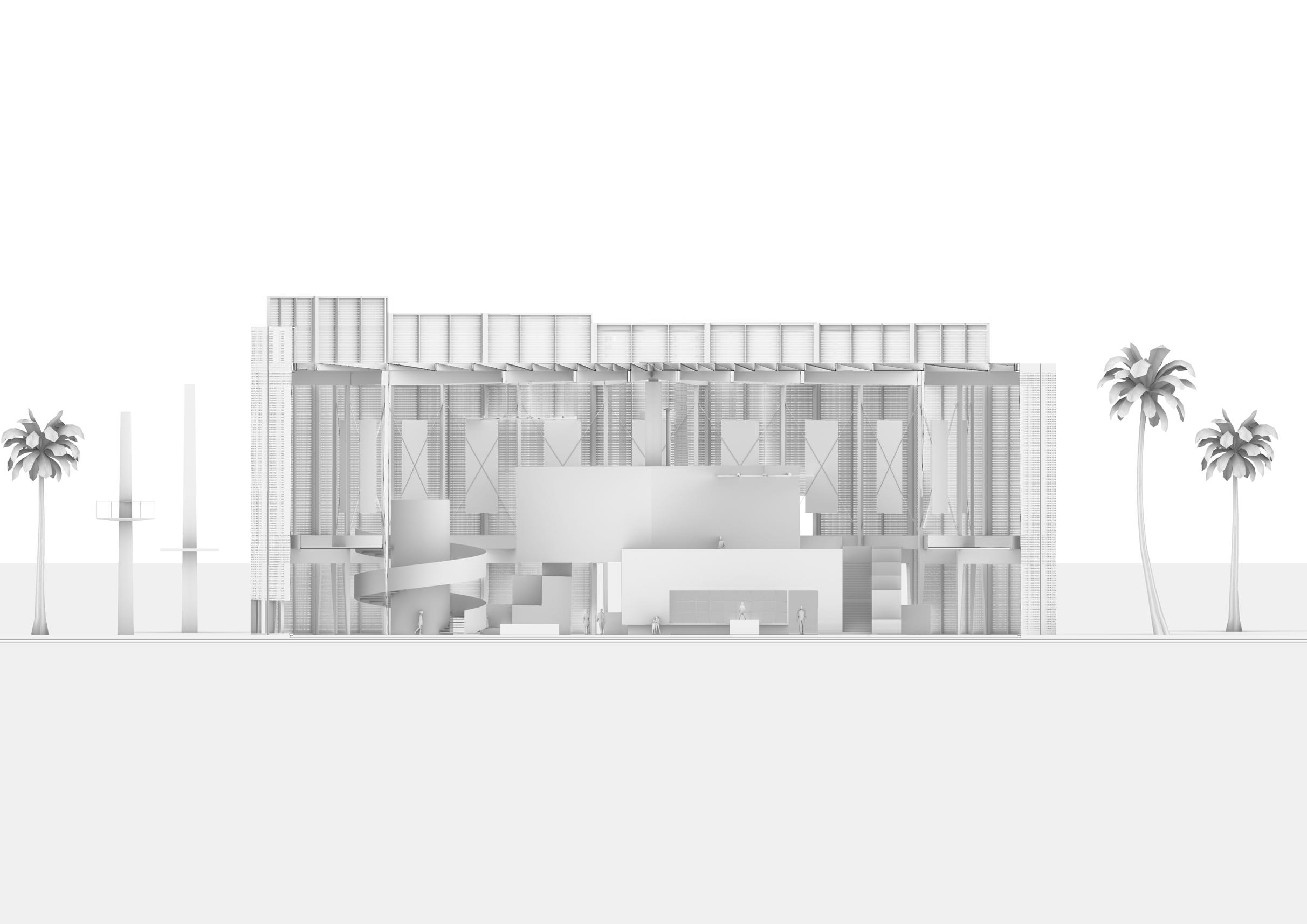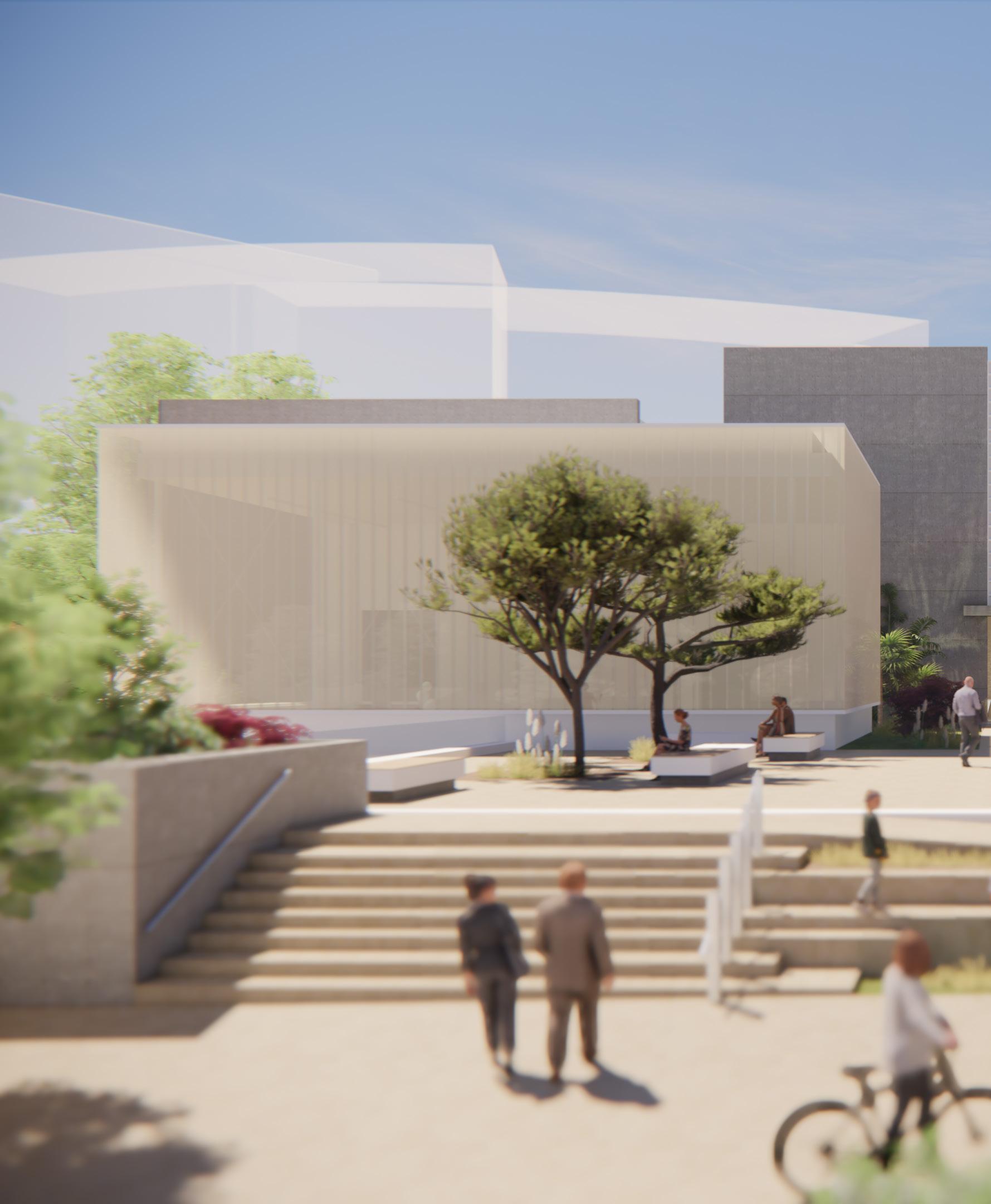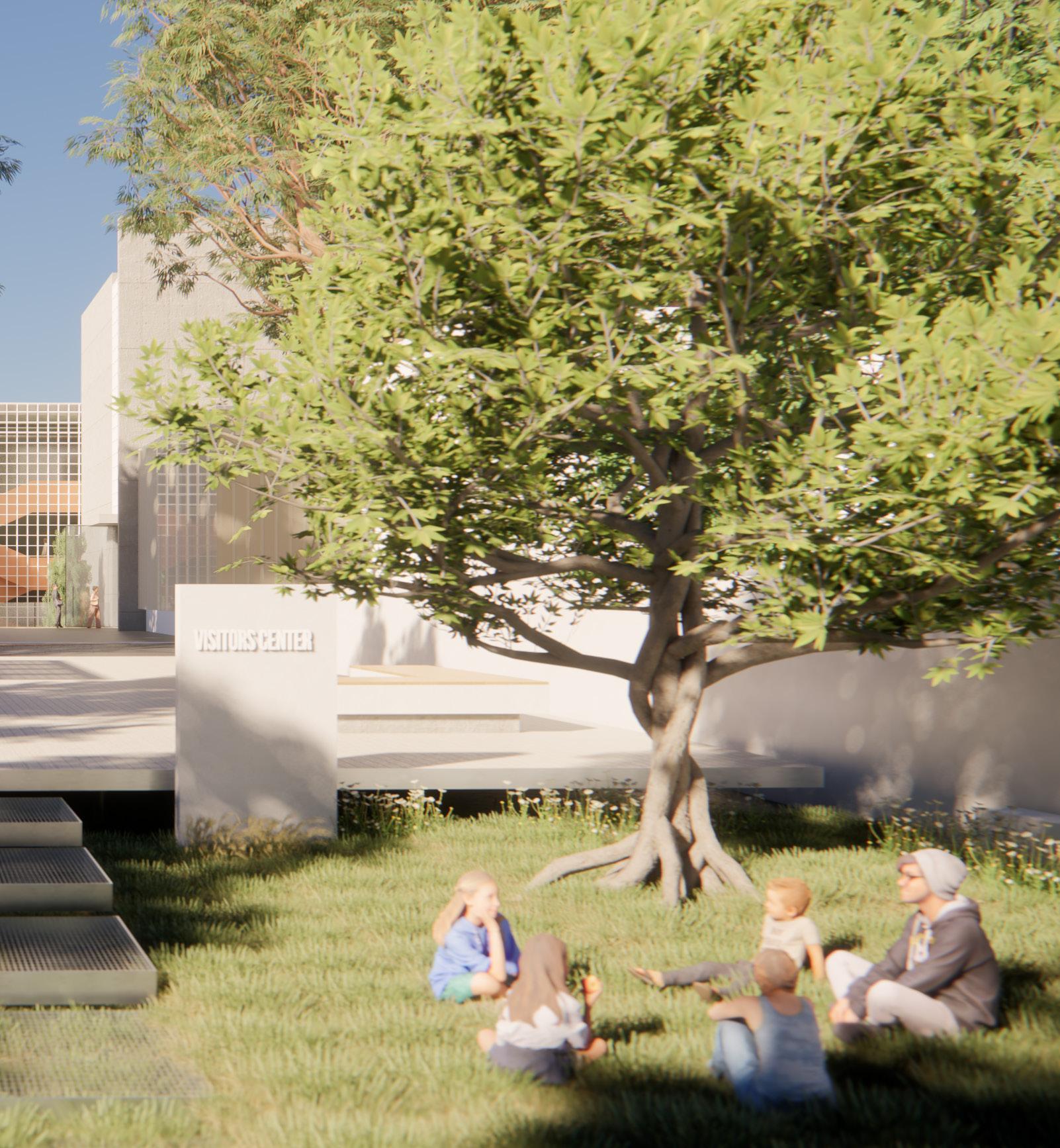 The proposed plan aims to pay homage to the extensive variety of unique trees on the site by utilizing their shaded areas for communal gatherings. The arrangement of the above-ground structures has been designed to align with the historical ficus trees located on the southern side of the site. The lower volumes are positioned closest to the trees, with the higher volumes situated further away.
