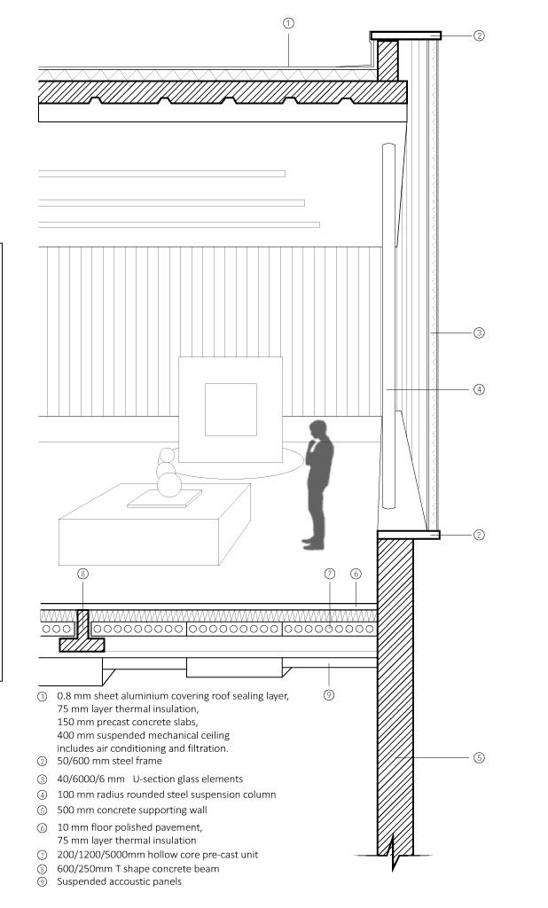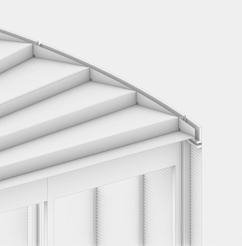 PAVILLION ROOF water accumilation pv array 2.5%inc. Aluminium panel 6 x 30 cm perforetaed aluminium panel steel beam