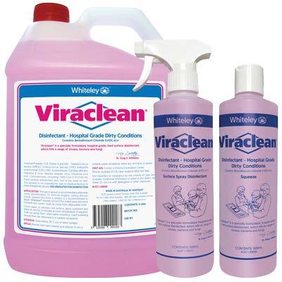 Powerful protection made simple – Viraclean® is a hospital grade disinfectant designed to kill a broad range of viruses and bacteria on a wide variety of surfaces. With its pleasant lemon fragrance and ready-to -use squeeze and spray bottles, Viraclean® combines powerful disinfection with ease of use –whether you're disinfecting in healthcare, workplace or home environments.