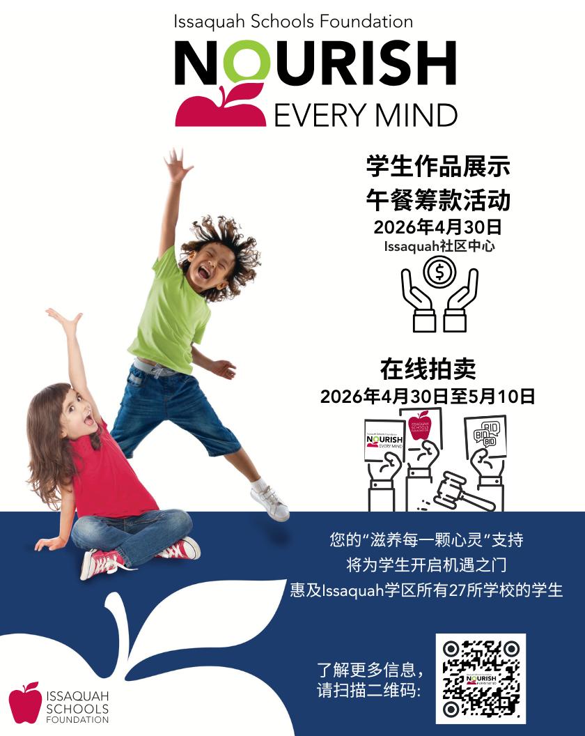 我希望您也能加入我们,成为支持学生的社区一 员。您可以通过志愿服务或捐款来参与其中。参 与社区活动的一个绝佳方式是参加我们于 4 月 30 日在Issaquah社区中心举办的“滋养心灵”学生成果 展示会暨午餐筹款活动。每年,近 600 名社区成 员都会齐聚一堂,亲身感受我们的工作对学生产 生的积极影响。我们共同为学生们开启通往无限 可能的大门,而现在正是我们聆听他们跨越这些 大门后所取得的非凡成就的最佳时机。您可以访 问我们的网站 www.isfdn.org 获取更多信息,期待 与您相见!