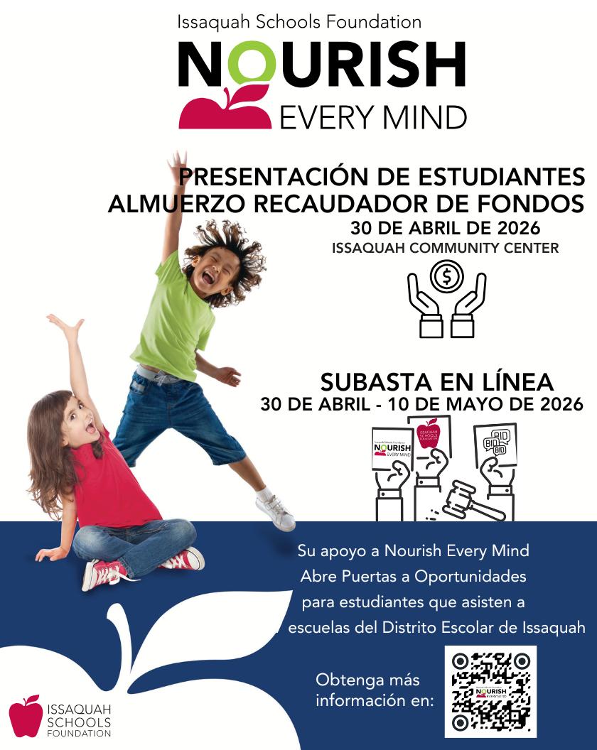 Espero que se unan a nosotros como parte de una comunidad que se hace presente por los estudiantes. Pueden hacerlo ofreciendo su tiempo como voluntarios o haciendo una contribución financiera. Una excelente manera de participar en la comunidad es acompañarnos en nuestro evento Nourish Every Mind Student Showcase and Luncheon Fundraiser el 30 de abril en el Issaquah Community Center. Cada año, casi 600 miembros de nuestra comunidad se reúnen para experimentar de primera mano el impacto positivo de nuestro trabajo en los estudiantes. Juntos, abrimos puertas a nuevas posibilidades para ellos, y este es nuestro momento para escuchar las cosas increíbles que suceden cuando atraviesan esas puertas. Pueden visitar nuestro sitio web en www.isfdn.org para obtener más información, pero espero verlos allí.