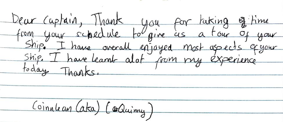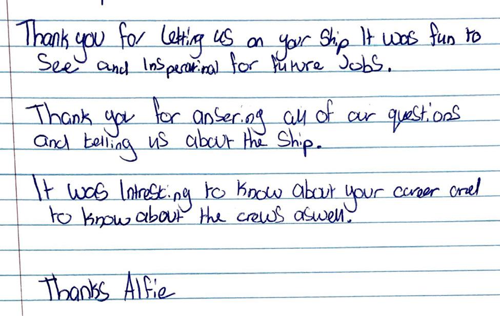 Kristian Williams, who works for Cornwall Marine Academy and attended with the children, said: “The pupils really valued the conversations they had with the Captain and Second Engineer about what it is like to work in the marine sector, as well as learning more about the vessel itself. They particularly loved seeing all the tools and gadgets on the bridge!”
