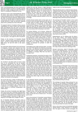 Certainly McLean hardly seems to have gone out of his way to secure the peace agreement that was now virtually within his grasp. He also visited Williams on the morning of 13 November, to seek advice concerning the response to his previous ultimatum. Signed by nearly all the leading chiefs, this stated that ‘they were willing to come to terms but that they were very anxious that he should go to see them’.