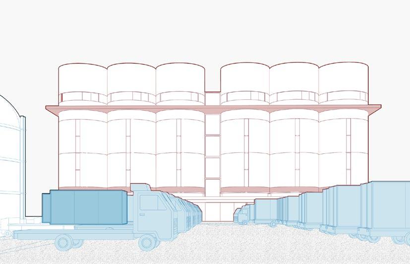 Focus on the quality of life of employees when produc�on is in a fallow period. 1/3 of the space is used to house the living unit.