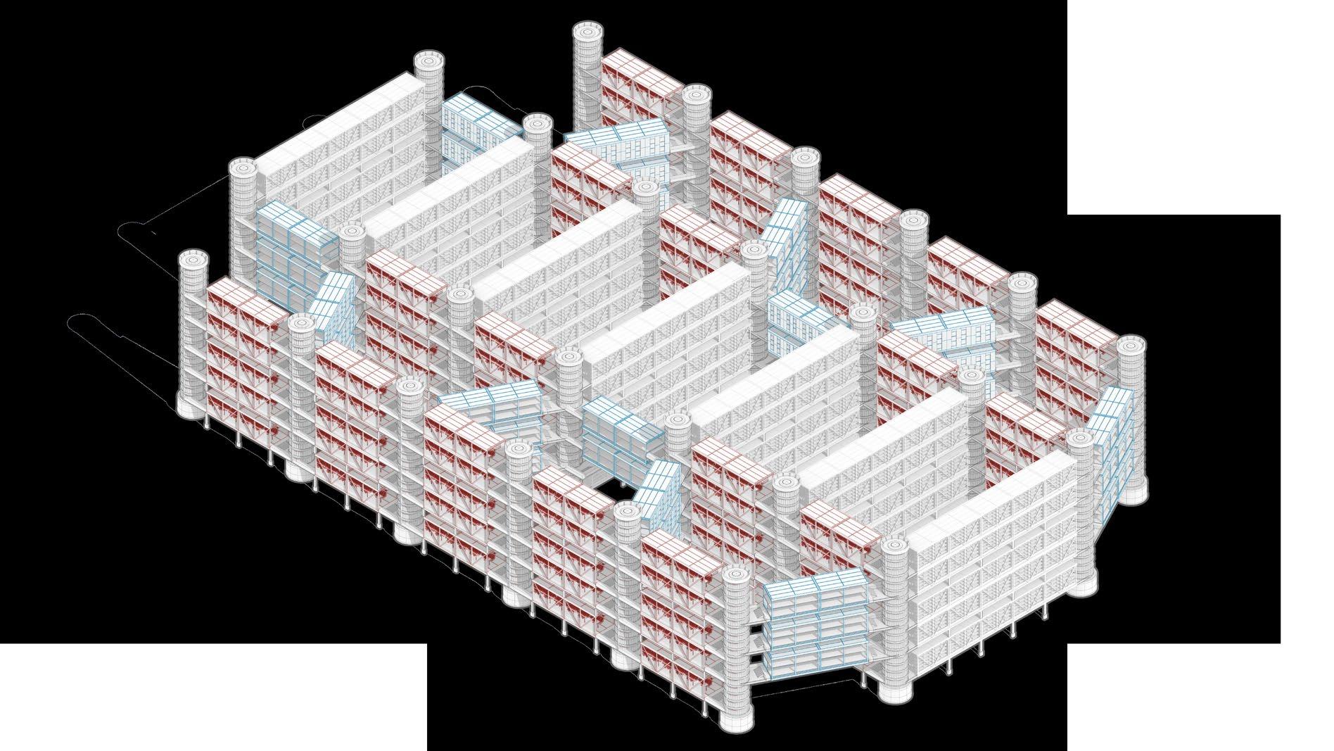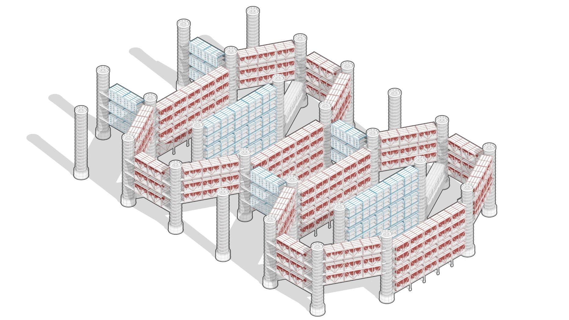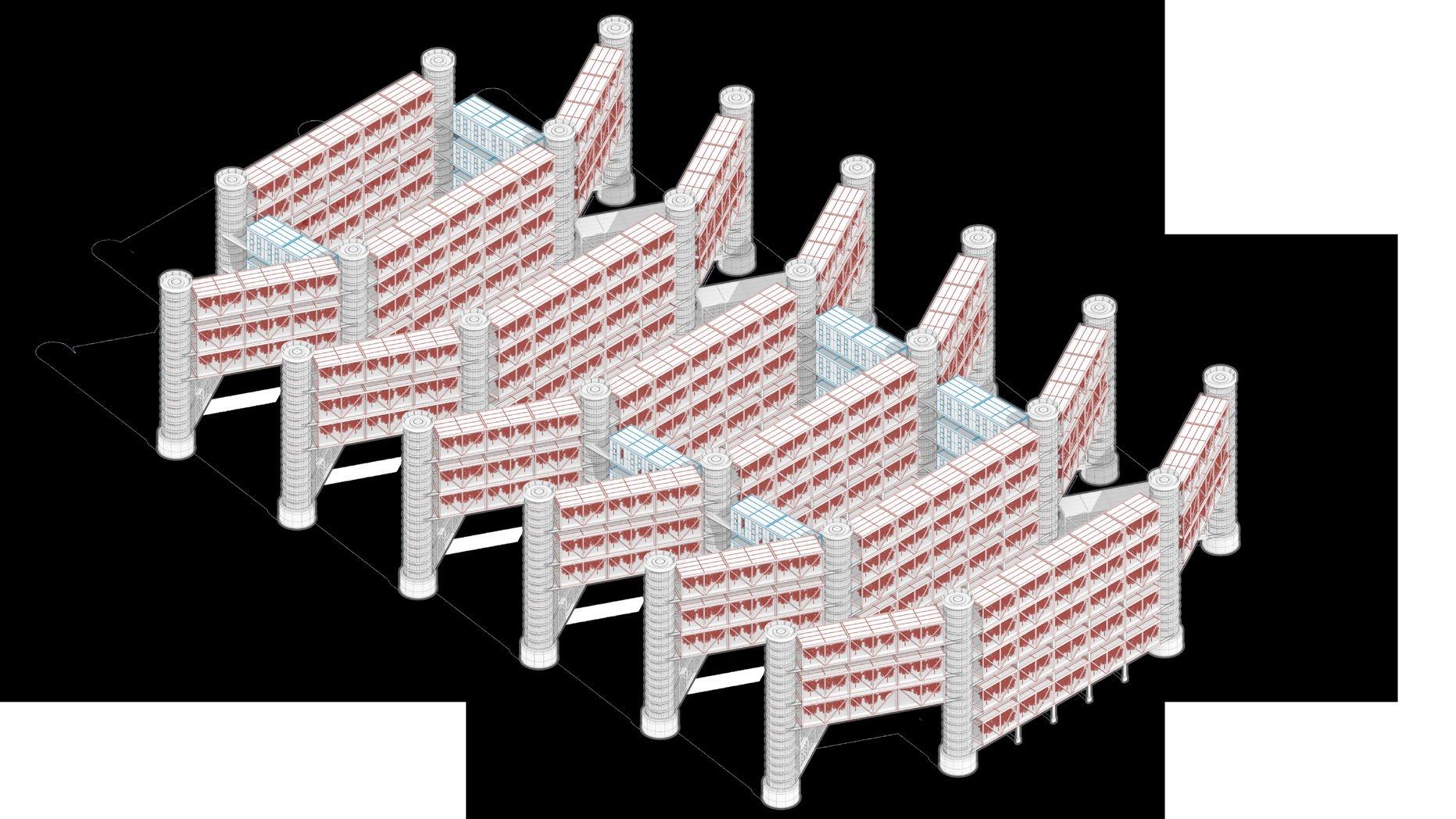 A small number of community units are inserted in three-dimensional agriculture to connect residential units to meet the daily needs of workers and researchers