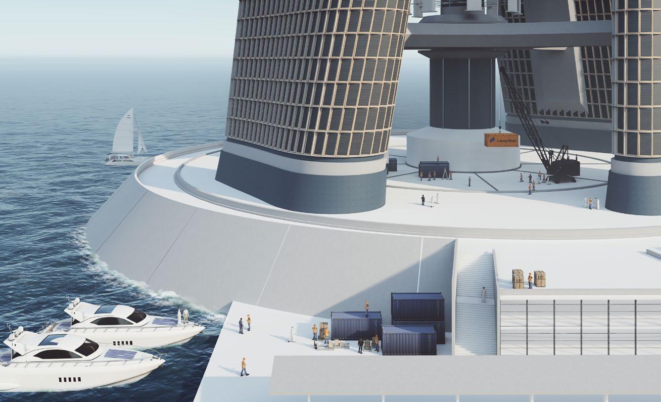 On the side of the hydrogen tower, I set up a huge working platform, which houses the dispatch room of the entire tower, and a pier for the berthing of ships. Workers, technicians and Qatari developers can land buildings by boat, and not only do they have to transport goods through the terminl, so it can also be used as a cargo storage area