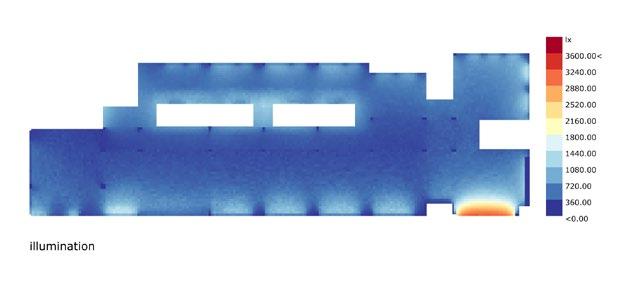 In terms of lighting, the interior layout led to poor internal lighting of the building, with the first and second floors and all corridors being dim, while the already insufficient light on the north side was even more insufficiently blocked by other buildings. And because the windows on the south and west sides lack shade, the classroom is always very hot, and even causes glare; The skylight on the roof is the hardest hit area for ultraviolet rays all year round, the students can only pull the curtains by themselves to block the direct sunlight.