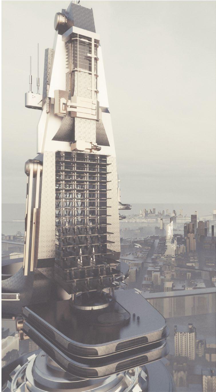 In order to improve the sustainable progress of Lussell, I decided to combine the current new technology to convert Lussell's abundant solar and wind energy into electricity, which can be used to produce and store hydrogen in large quantities, and finally hydrogen energy will become a new energy source for the entire city, completely getting rid of the high carbon emission situation of the past. The whole system is based on clean energy in nature, so I learned the model of Dubai Building, added new ideas, and designed a giant solar vertical wind turbine standing on the sea surface to comprehensively convert abundant wind resources and direct sunlight, and the sunlight reflected by the sea surface. The electricity generated by this clean energy source is transported to the seawater electrolysis zone below sea level, where the seawater in a specific area is absorbed by the electrolysis network, the decomposed oxygen is returned to the ocean, and the hydrogen is stored on the high-pressure seafloor. Thanks to the high energy ratio of hydrogen, such energy buildings can significantly increase the energy content of clean energy, or even completely replace all traditional energy sources in Lussell.