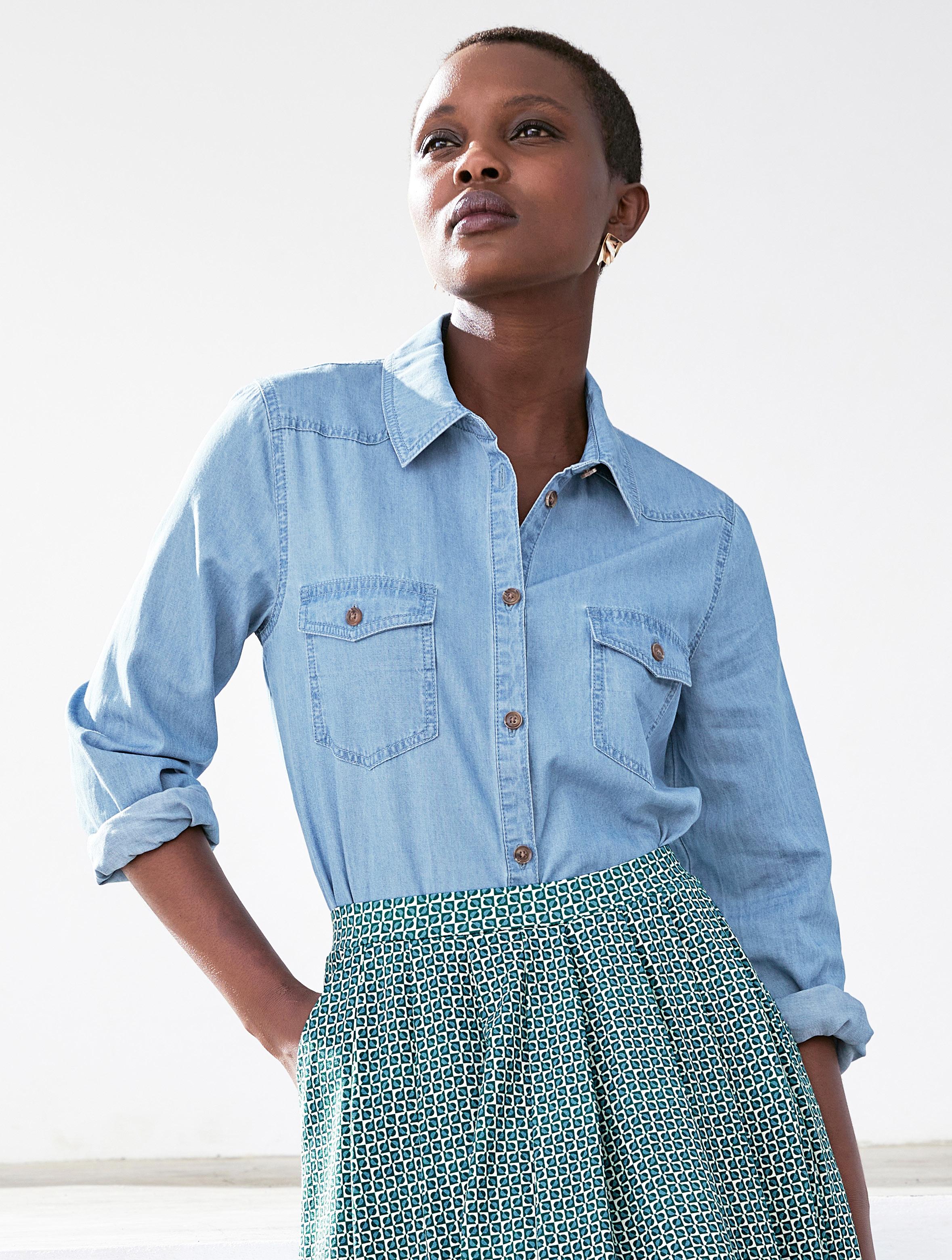 Les 7 essentiels de votre dressing urbain : chino, blazer, blouse floue, 5 poches couleur, jean denim, chemise popeline et l’indispensable mocassin. À vous de jouer...
