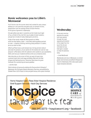 taking away the fear 269.345.0273 • hospiceswmi.org • facebook w w w.encorekalamazoo.com | 43