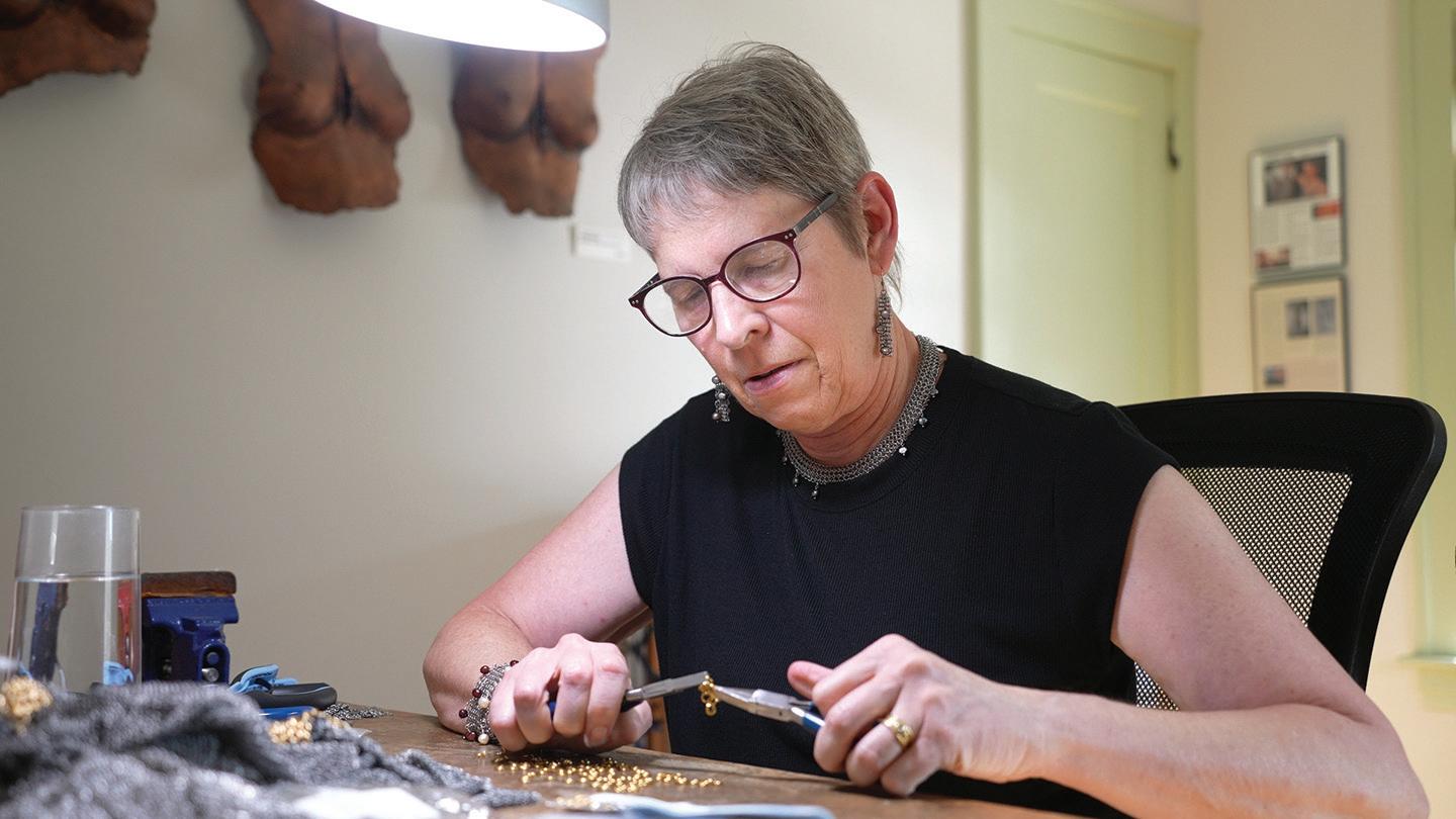 She spent the next 35 years experimenting with various techniques and forms: chainmail necklaces, chainmail earrings, chainmail bracelets and even chainmail shirts.