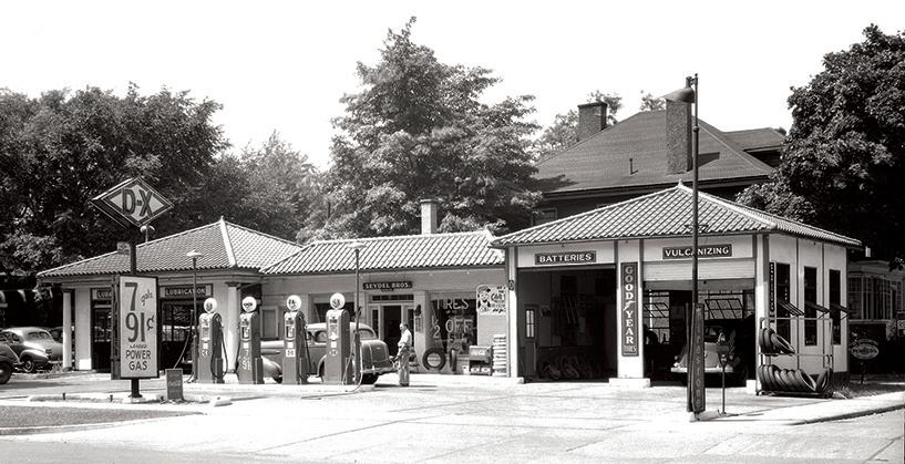 These days a trip to a gas station is mainly to fill up your tank or charge your electric vehicle. But for years, going to a gas station meant not only getting fuel but maybe also having your oil changed or procuring a new set of drinking glasses. Kalamazoo's first filling station opened in 1912 and was connected to an auto dealership. As the number of automobiles in the city grew, so did the number of gas stations. By 1924 the city directory listed 31 gas stations, and by 1942 that number had reached 152 — comparable to the number of grocery stores in the city at the time. With that much competition, gas stations had to be creative to attract customers. These are a few of my favorite filling stations from our city's past: