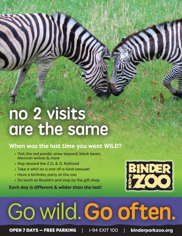 no 2 visits are the same When was the last time you went WILD? • Visit the red panda, snow leopard, black bears, Mexican wolves & more • Hop aboard the Z.O. & O. Railroad • Take a whirl on a one-of-a-kind carousel • Have a birthday party at the zoo • Do lunch at Beulah’s and stop by the gift shop
