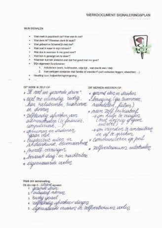 • Signalerings& veiligheidsplan? Je signaleringsplan is je werkinstrument, verwijs hierin wanneer je nood hebt aan het gebruik van je veiligheidsplan.