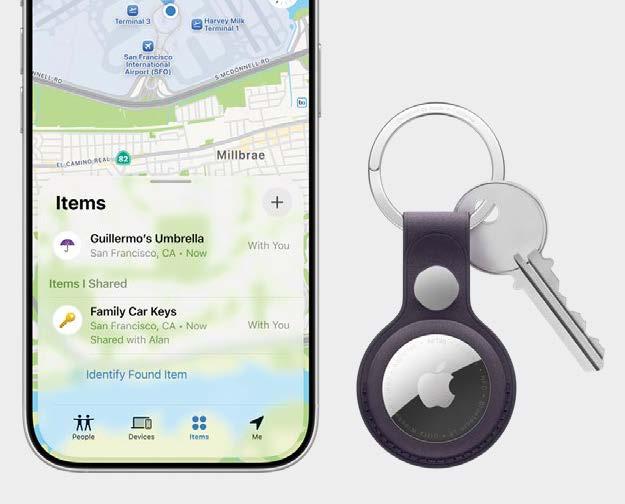 V apke Nájsť vidíš, kde máš kľúče, peňaženku, batožinu, kabelku alebo čokoľvek iné. Prehraj zvuk cez vstavaný reproduktor a nájdi AirTag vo svojej blízkosti. Ak sa nachádza ďaleko, využi pri jeho hľadaní pomoc miliónov zariadení Apple v sieti apky Nájsť. V úplnej anonymite a so šifrovaním v záujme ochrany súkromia.