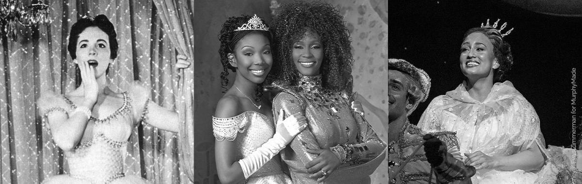 Photos left-right: Julie Andrews in Rodgers&Hammerstein’sCinderella (CBS/Emil Romano); Brandy and Whitney Houston in Rodgers&Hammerstein’sCinderella (© 2021 Disney); Laura Osnes in Rodgers + Hammerstein's Cinderella (Broadway, 2013)