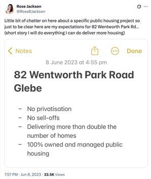 links. These rentals will remain in public ownership and be available to frontline workers, such as nurses, teachers, paramedics, and firefighters, who are increasingly being priced out of the inner city.