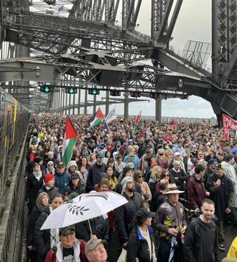 Hundreds of thousands march across Sydney Harbour Bridge for Palestine
