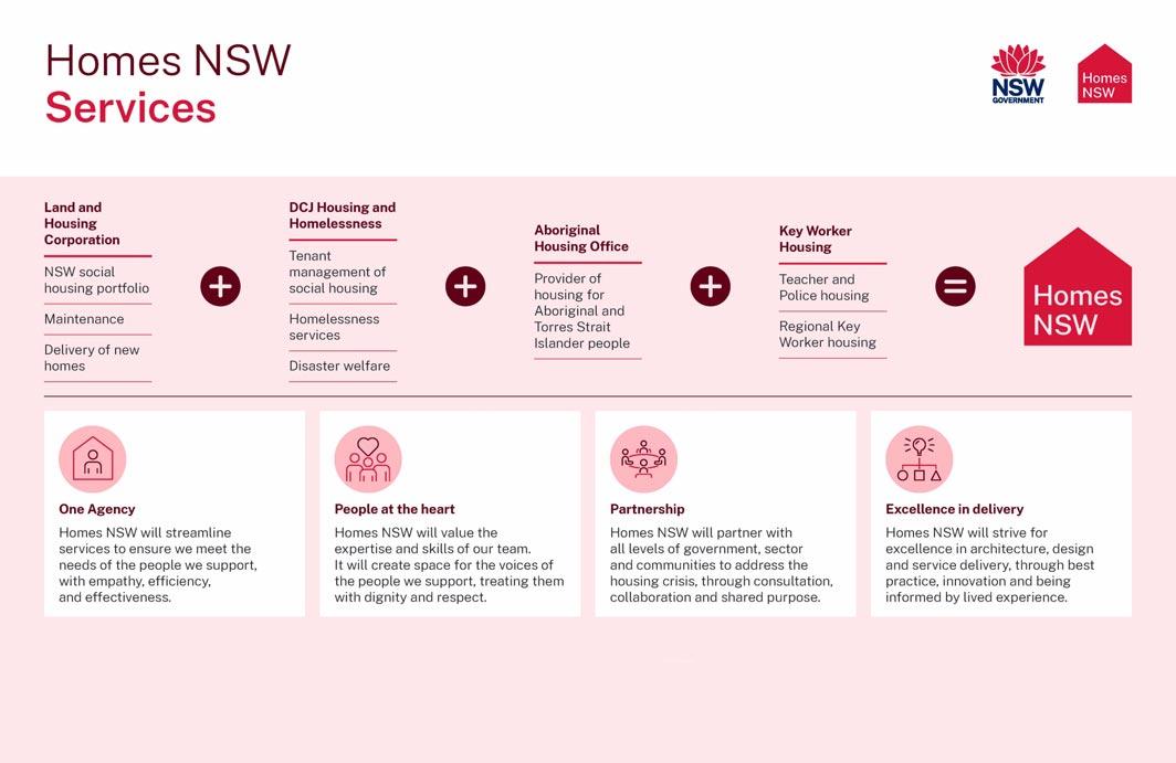 “As a division within DCJ, Homes NSW aims to provide safe and secure homes through social and affordable housing while delivering support and services that minimise the repetition of homelessness experiences.”