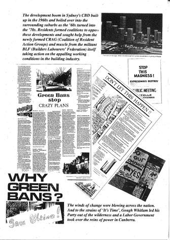 The development boom in Sydney’s CBD built up in the 1960s and boiled over into the ’70s. Residents formed coalitions to oppose these developments and south help from the newly formed CRAG (Coalition of Resident Action Groups) and muscle from the militant BLF (Builders Labourers’ Federation) itself taking action on the appalling working conditions in the building industry.
