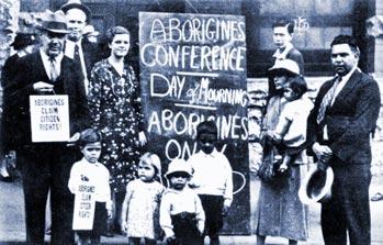Aboriginal men and women gather at Australia Hall in Sydney for the Day of Mourning protests. Participants come from across Australia to continue a struggle that began 150 years ago.