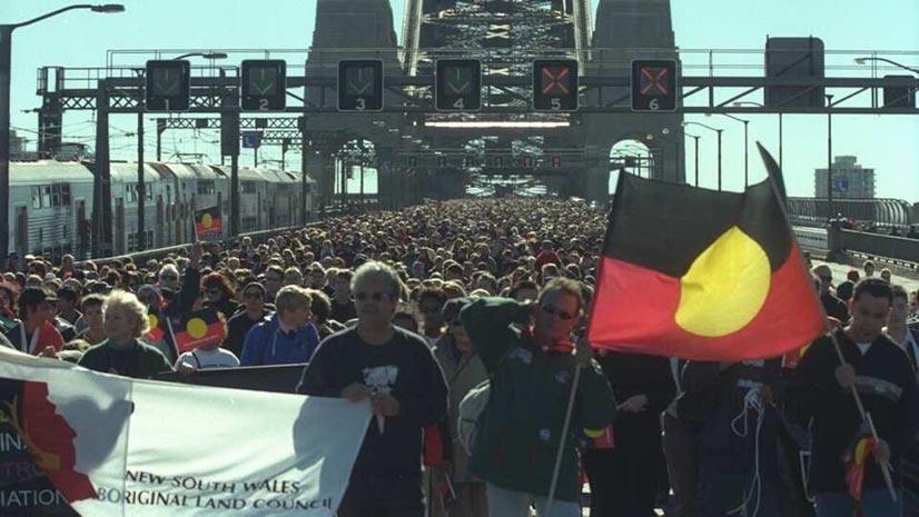 2000 Hundreds of thousands of Australians walk across Sydney Harbour Bridge as part of Corrobboree