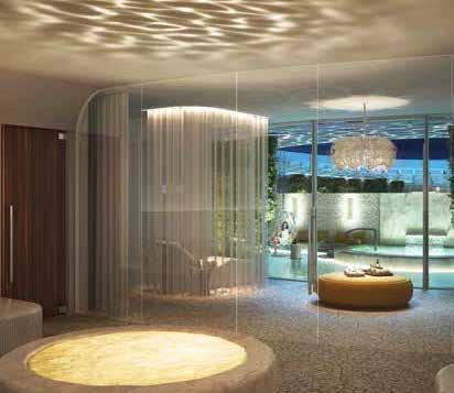 > Relaxation spaces. With 5 treatment rooms, a thermal bath, sauna, steam room, fitness center, and outdoor and indoor pools, the spa delivers serenity. Experience inner balance after a visit to the Vichy shower or a meditation session.