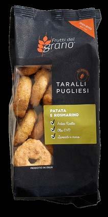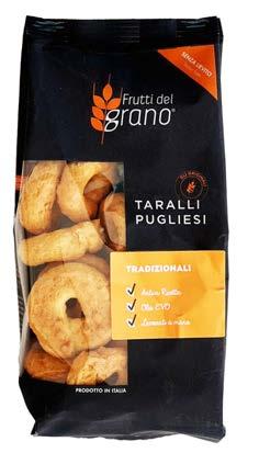 From Apulia the traditional crunch is the Taralli, a type of cracker that is made from wheat, olive oil and wine, hand rolled into a circle. There are many flavors of Taralli and more have developed throughout the years. A historical one is made from Arso grain flour which is a type of burnt wheat, with a nutty and smokey flavor, giving an interesting combination of color and flavor to the Taralli. Traditional flavors include the Classic, Calzone and Rosemary, all in the same artisanal style and quality, a great addition to a charcuterie board and enjoyed with a glass of wine.
