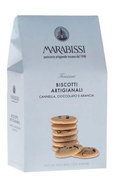 Tuscan cookies with cinnamon, chocolate and orange in blue box