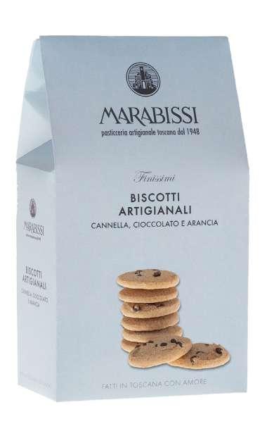 Tuscan cookies with cinnamon, chocolate and orange in blue box