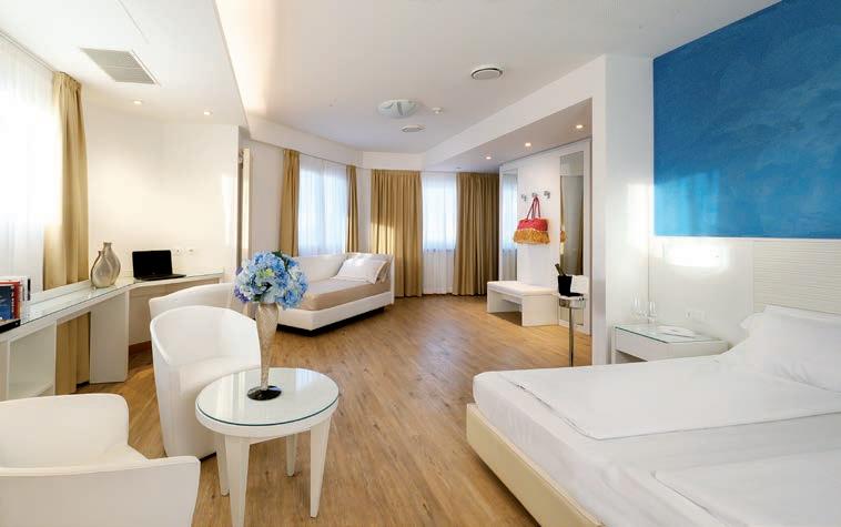 Auswahl der besten Weine Italiens. „Smart and easy“ ist das Motto der Light Bar Blu, dem sommerlichen Ambiente. Ein 70 Meter langer Swimming-Pool, der zum Teil als Indoor-Pool genutzt wird steht den Gästen ebenso zur Verfügung wie ein schöner Privat-Strand. Der 2000 m² große SPA Bereich ist die exklusive Oase für Ihr Wohlbefinden und für Ihre Schönheit.