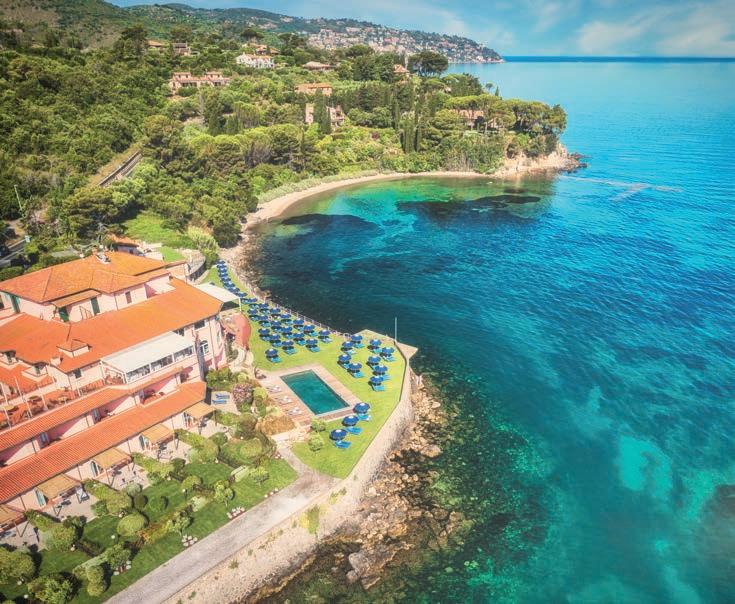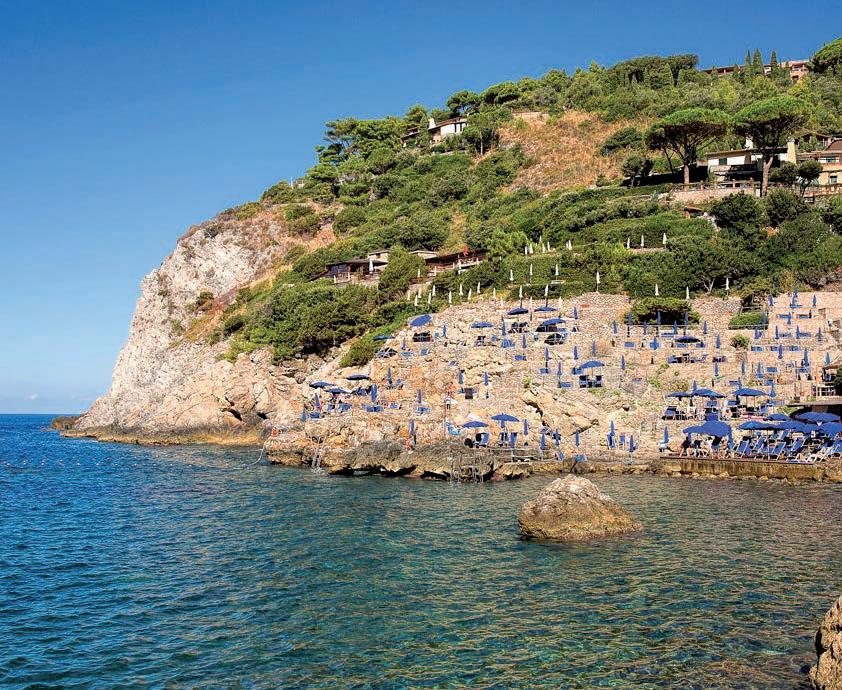 in dem abends nach toskanischer Tradition kulinarische Köstlichkeiten serviert werden. Im Bistro La Torre genießen Sie am Pool kleine Gerichte. Auf perfekt angelegten Terrassen entstand ein eindrucksvoller Garten mit mediterranen Pflanzen, in dem sich der schöne Swimming-Pool befindet. Ein „Parco sensoriale“ lädt zu erholsamen Spaziergängen in der Natur ein. 800 Meter vom Hotel entfernt liegt die kleine Bucht Cala Piccola am glasklaren Meer.