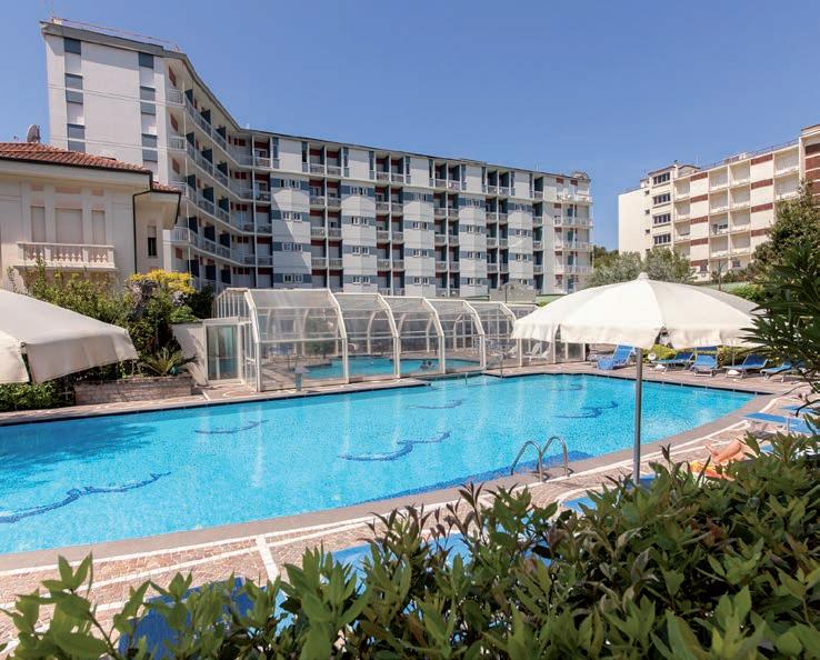 Daseinzigartige Resort am Meer in Jesolo setzt mit seinem unverwechselbaren Stil „Made in Italy“ neue Maßstäbe für Ihre Ferientage. 197 Zimmer und Suiten wurden mit exquisiten Materialien, hellen Farbtönen und modernstem Komfort ausgestattet. Alle verfügen über Balkons oder Terrassen und sind großteils mit Meerblick. Den frischen Geschmack Italiens genießen Sie im Restaurant mit Spezialitäten der mediterranen und venezianischen Küche, dazu eine erlesene