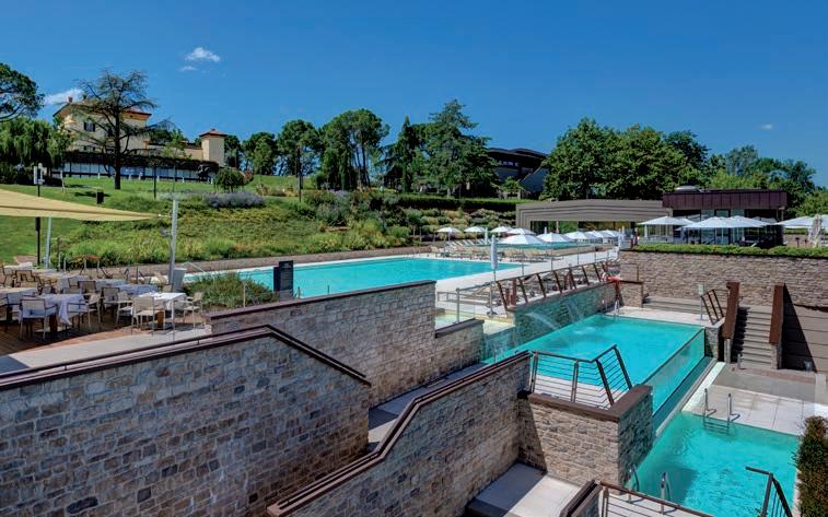 Ein 82 mt. langer Swimming-Pool ist der Mittelpunkt dieses Resorts, angeschlossen an den Wellness-Bereich mit Fitness-Center. Besondere Aufmerksamkeit gilt dem Restaurant – hervorragende kulinarische Köstlichkeiten werden im Restaurant oder auf den Terrassen serviert. Die Adriaküste mit schönen Stränden ist 8 km entfern und lädt zu erholsamen Stunden ein. Eingebettet in die malerische, sanfte Hügellandschaft ist die schöne 18-Loch Golf Anlage