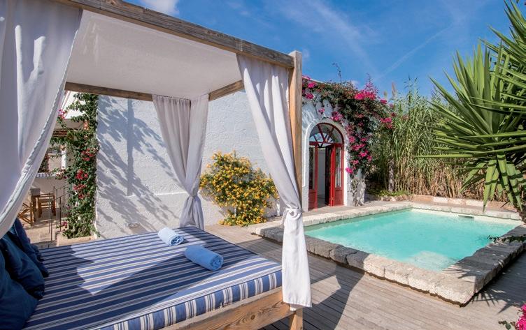 erholsamen Stunden ein. Das Hotel verfügt über zwei sehr schöne Buchten mit eigenem Strand und einem exquisiten Restaurant am Meer. Im Restaurant des Hotels werden Sie mit mediterranen und traditionellen Köstlichkeiten verwöhnt, dazu die besten Weine. 29 stilvolle Zimmer, 12 exklusive Suiten mit eigenem Pool und drei Privat-Villen wurden mit Geschmack und Eleganz eingerichtet und bieten jeglichen Komfort. Genießen Sie unvergessliche Ferien in Apulien!