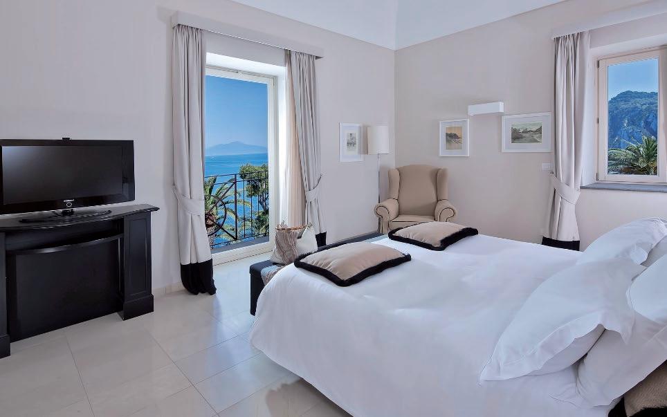 Eine reizvolle Villa auf der bezaubernden Insel Capri erstrahlt nach einer liebevollen Renovierung in neuem Glanz! Ein blühender 3000 m² großer Garten mit Swimmingpool und Sonnenterrassen umgibt diese Villa. Ein schlicht-eleganter Stil prägt die Einrichtung der 21 Zimmer und Suiten, die mit erlesenen Materialien, raffinierten Dekorationen und ausgezeichnetem Komfort sowie prachtvollen Ausblicken auf das Meer überzeugen. Eine Suite verfügt über eine weitläufige Terrasse mit privatem