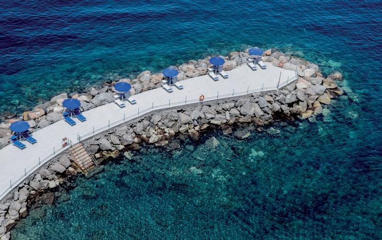 Materialien jeglichen Komfort. Einer „Bühne am Golf“ gleicht das Restaurant – bei fantastischen Ausblicken werden Sie mit hervorragenden Köstlichkeiten der mediterranen und italienischen Küche verwöhnt. Den Gästen steht ein MeerwasserPool in der malerischen Parkanlage zur Verfügung. Auf zwei Felsplateaus wurden schöne Sonnenterrassen mit direktem Zugang zum kristallklaren Meer eingerichtet. Erleben Sie die Gastlichkeit und die Schönheit dieses einzigartigen Hotels!