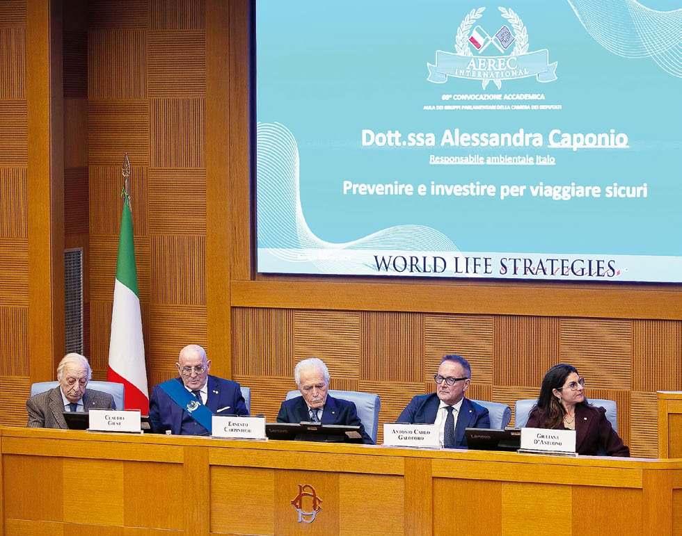 investire in modo strutturato per offrire un’esperienza di viaggio basata su serenità, efficienza e qualità. Inoltre dal 2020 tutti i treni Italo sono equipaggiati con filtri HEPA a conferma dell’attenzione alla qualità dell’aria e al benessere complessivo delle persone. Italo per questo impegno nella prevenzione ha ottenuto il riconoscimento dell’AEREC presso la Camera dei Deputati. In occasione della 69ª Convocazione Nazionale, parte nel progetto “World Life Strategies”, i membri dell’organizzazione attivi in campo imprenditoriale, professionale, culturale, sociale ed umanitaria hanno approfondito i temi della prevenzione, della salute, dell’energia e dello sviluppo economico. All’evento, voluto fortemente dal Presidente dell’AEREC, Ernesto Carpintieri, hanno partecipato l’Onorevole Luciano Ciocchetti e il Senatore Giorgio Salvitti, con autorevoli contributi sul tema del benessere. Per Italo è intervenuta Alessandra Caponio, responsabile ambientale per illustrare l’impegno dell’azienda negli investimenti per viaggiare in sicurezza. Altri riconoscimenti sono stati conferiti alla cena di Gala presso Palazzo Brancaccio a personaggi