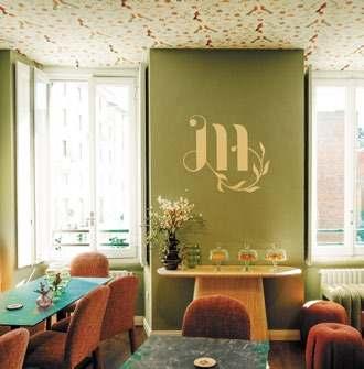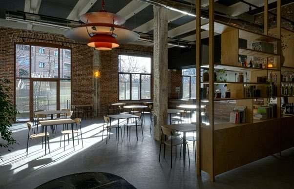 A sinistra il distretto di Tortona Rocks della Design Week. In basso Momenteeria, una sala da tè ma non solo a due passi dalla Basilica di Sant’Ambrogio.