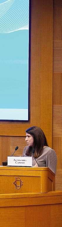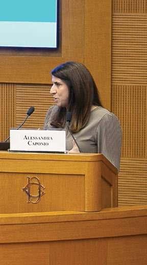 L’intervento di Alessandra Caponio, Responsabile Ambientale Italo, alla Camera dei Deputati. In basso a destra la dottoressa Caponio con il riconoscimento dell’AEREC.