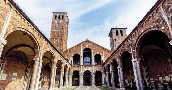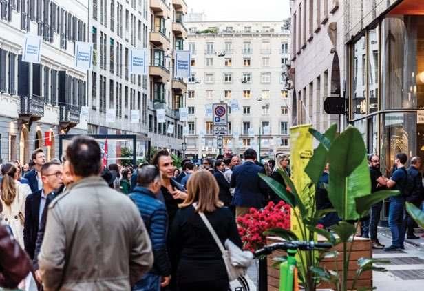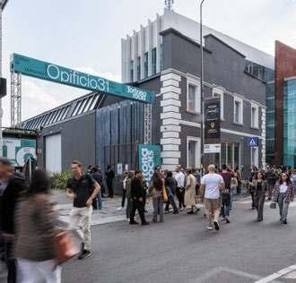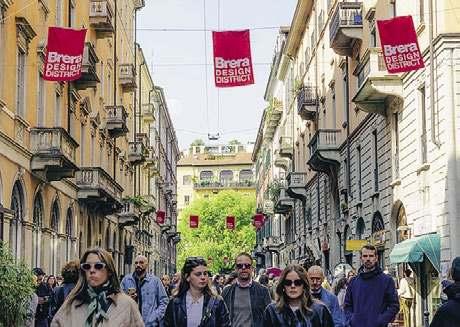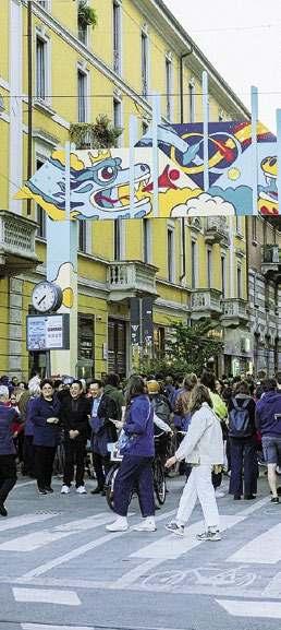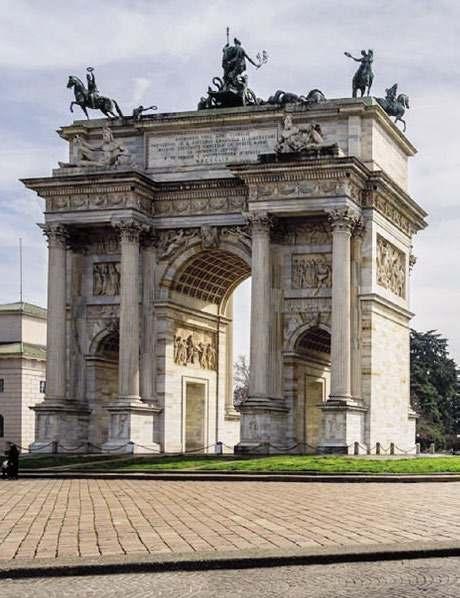 Il Fuorisalone, a destra due immagini della scorsa edizione, si svolge da lunedì 20 a domenica 26 aprile. In basso due monumenti del centro di Milano: la Basilica di Sant’Ambrogio e l’Arco della Pace, che ha ospitato il braciere dei Giochi Invernali.