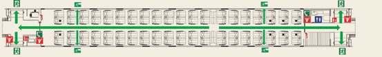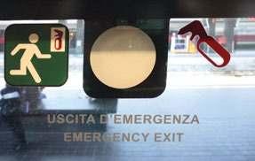 In ordinary condition of safe running, travellers must remain in their assigned seats so that they do not prevent the work of on-board staff performing safety-related tasks or interfere with train evacuation in the event of an emergency. In the event of an emergency evacuation, follow the instructions of the on-board staff and the following general safety information:
